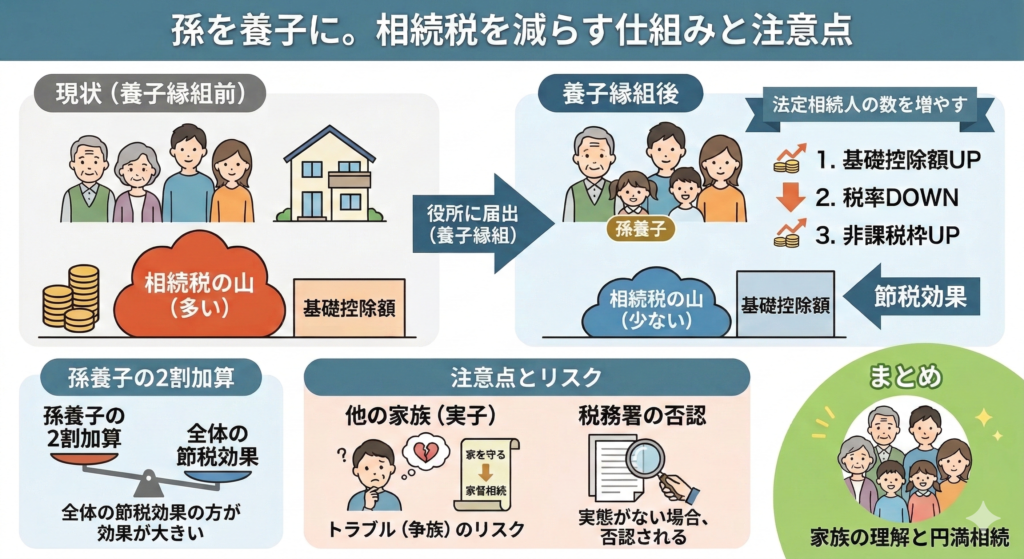「孫を養子にすると、相続税が安くなるらしい」 資産家の方であれば、一度は耳にしたことがある話かもしれません。 結論から申し上げますと、養子縁組は現代においても「即効性のある節税対策」の一つとなります。 アパート建築のように多額の借金をする必... -